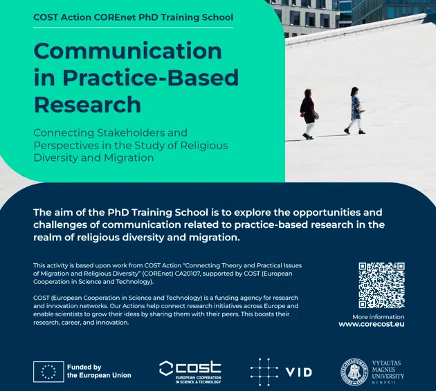 In light of this context, the training school taking place in Oslo, Norway on 8-11 September 2025 will aim to explore the opportunities and challenges of communication related to practice-based research in the realm of religious diversity and migration.