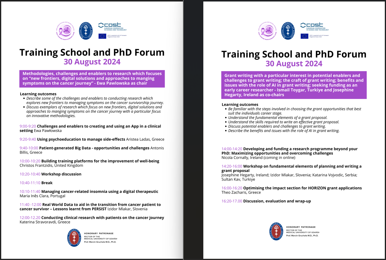 - Session one (09:00-13:00 CEST): Methodologies, challenges and enablers to research which focuses on “new frontiers, digital solutions and approaches to manging symptoms on the cancer journey” - Ewa Pawlowska, Poland, as chair