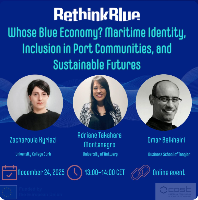 Join RethinkBlue on 24 November at 13:00–14:00 CET for an online webinar exploring how maritime identity, port-city development and community inclusion shape more just and sustainable blue futures.