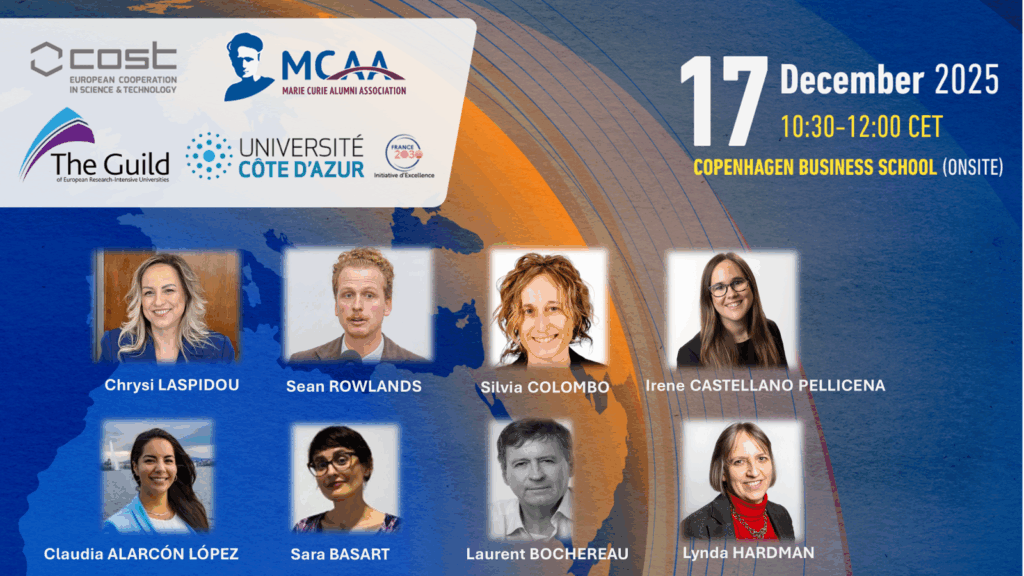 As part of this major conference, the side event ‘From research to relation: international scientific networks, the quiet diplomats‘ explored how international scientific networks and long-standing research collaborations underpin trust-building and contribute to science diplomacy and global decision-making. Organised by the European Cooperation in Science and Technology (COST) Association, the Marie Curie Alumni Association (MCAA), The Guild of European Research-Intensive Universities, and Université Côte d’Azur, the session aimed to present concrete case studies illustrating these contributions and to engage with the audience.
